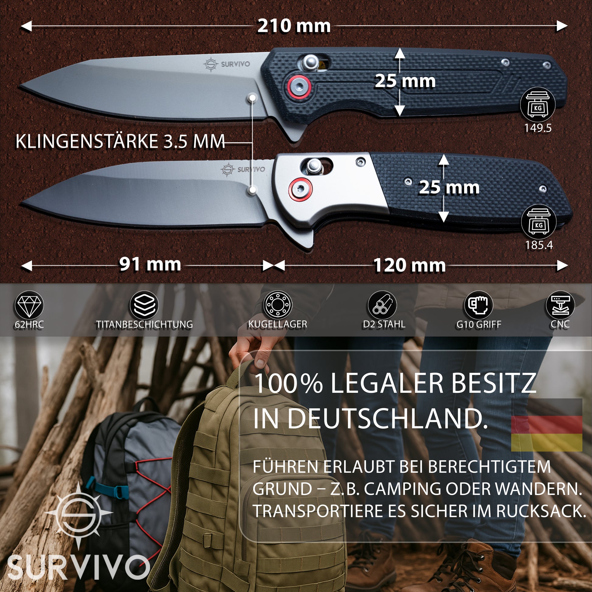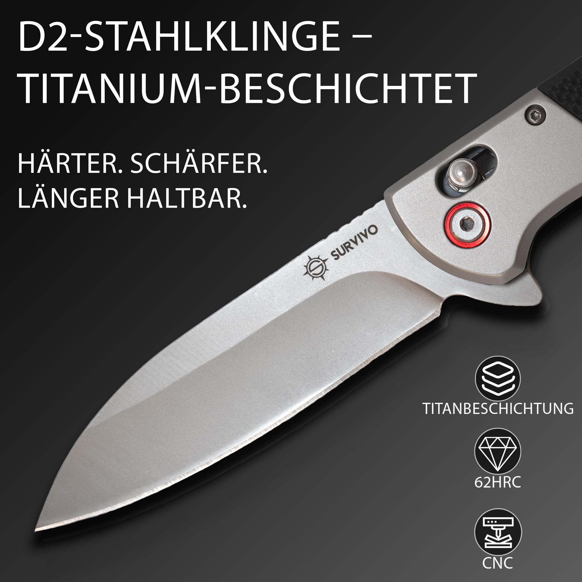 SK1 Klappmesser – Klinge aus D2-Stahl mit Titan-Beschichtung & G10 Griff