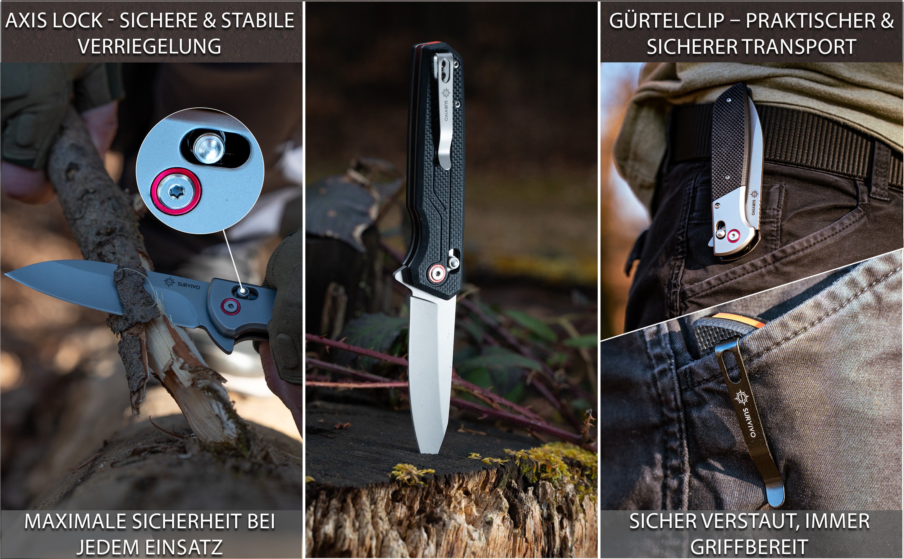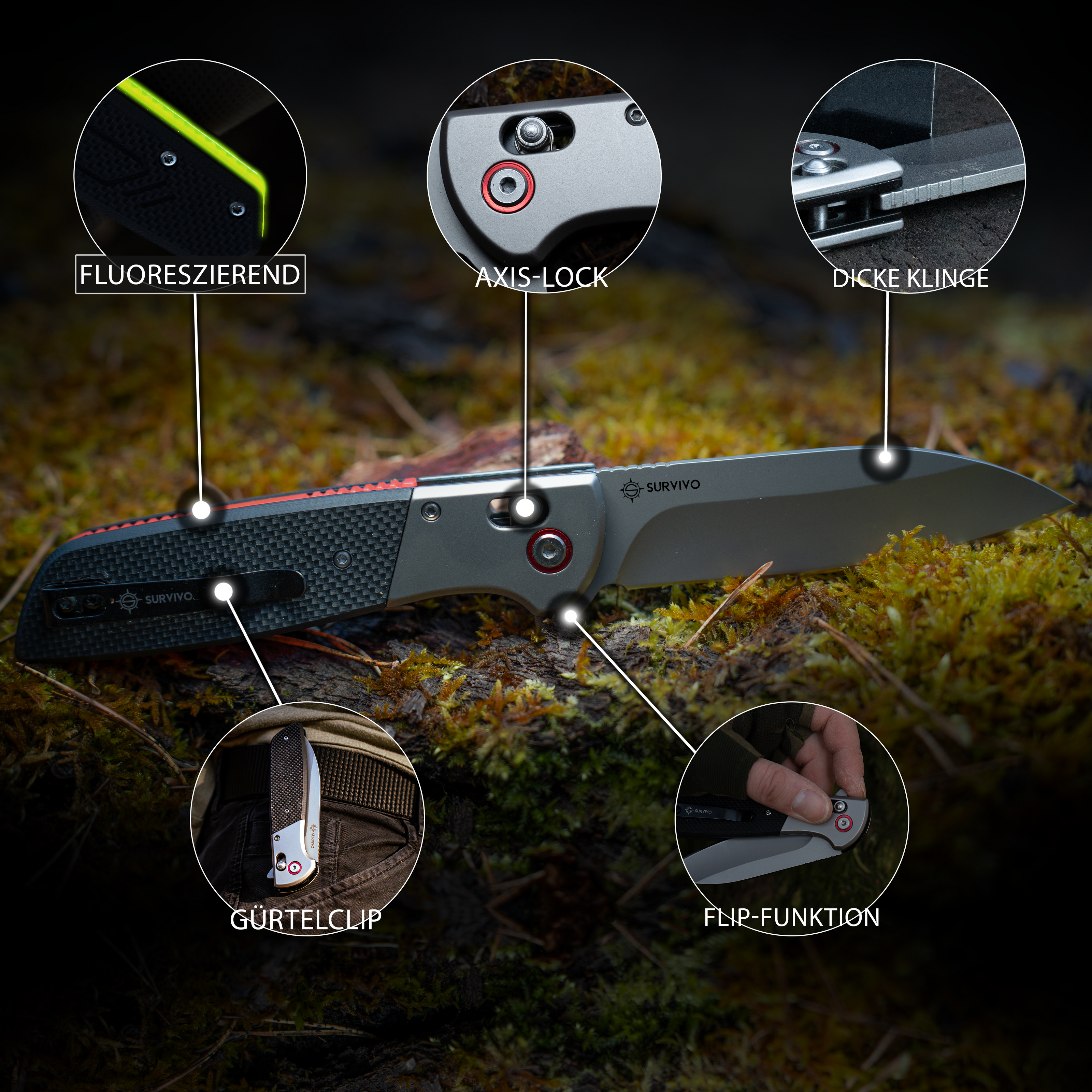 Mit seiner massiv gearbeiteten Klinge, dem sicheren Axis-Lock-Mechanismus, praktischer Flip-Funktion für blitzschnelles Öffnen, einem Gürtelclip für schnellen Zugriff und dezenten fluoreszierenden Details setzt es neue Maßstäbe in Sachen Funktionalität und Design.